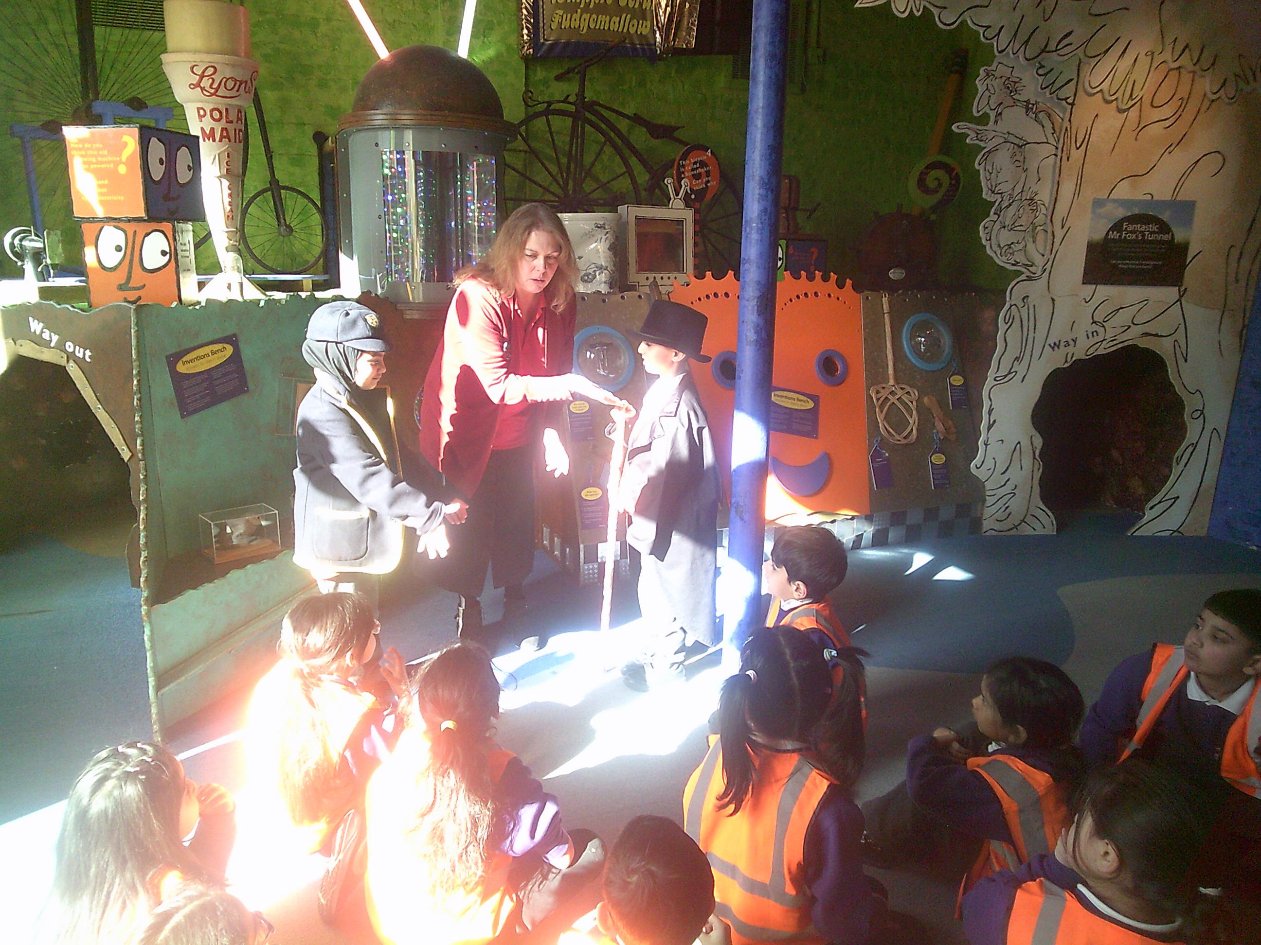 Year 2 had a wonderful trip to The Roald Dahl Children’s Gallery in Aylesbury. We really enjoyed the people in the Gallery acting out some parts of his stories like ‘The Twits’. We thought it was hilarious when they showed us a disgusting glass eye, just like the one Mrs Twit used to trick Mr Twit. We had lots of opportunities to explore some of our favourite stories such as Mr Fox’s tunnel, James and the Giant peach, Matilda’s library and the BFG. During our visit we had huge amounts of fun exploring shadows, sound, minibeasts and we even explored how the green screen worked. We made an appearance on TV and then were squashed and stretched! Some of us travelled in Charlie’s glass elevator and we all got to participate in some drama activities like Charlie and the Chocolate factory. Have a look at all the fun that we had!