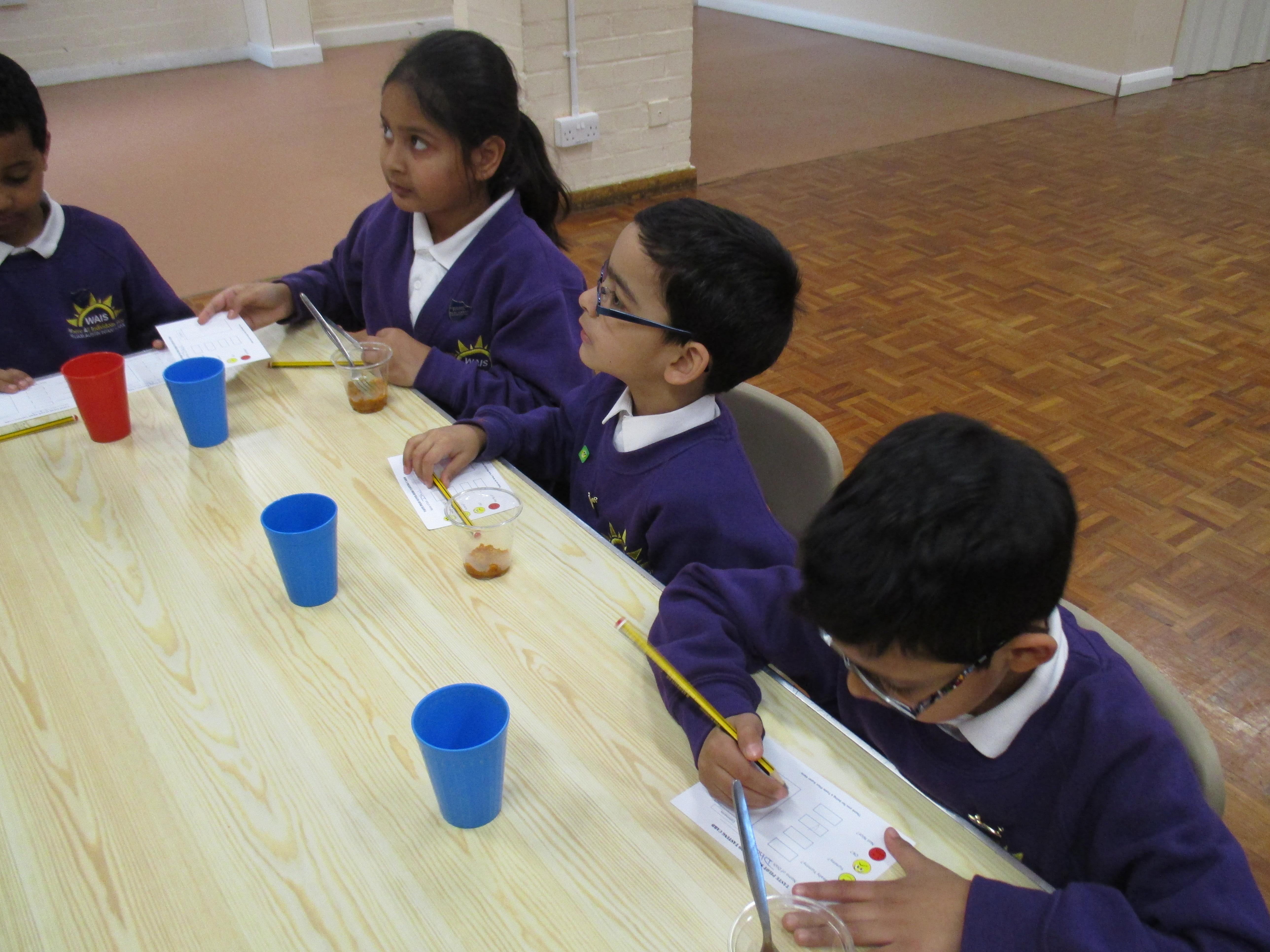 The children each tried some new dishes and puddings and filled in a voting card for each one to say whether they liked them or not.
