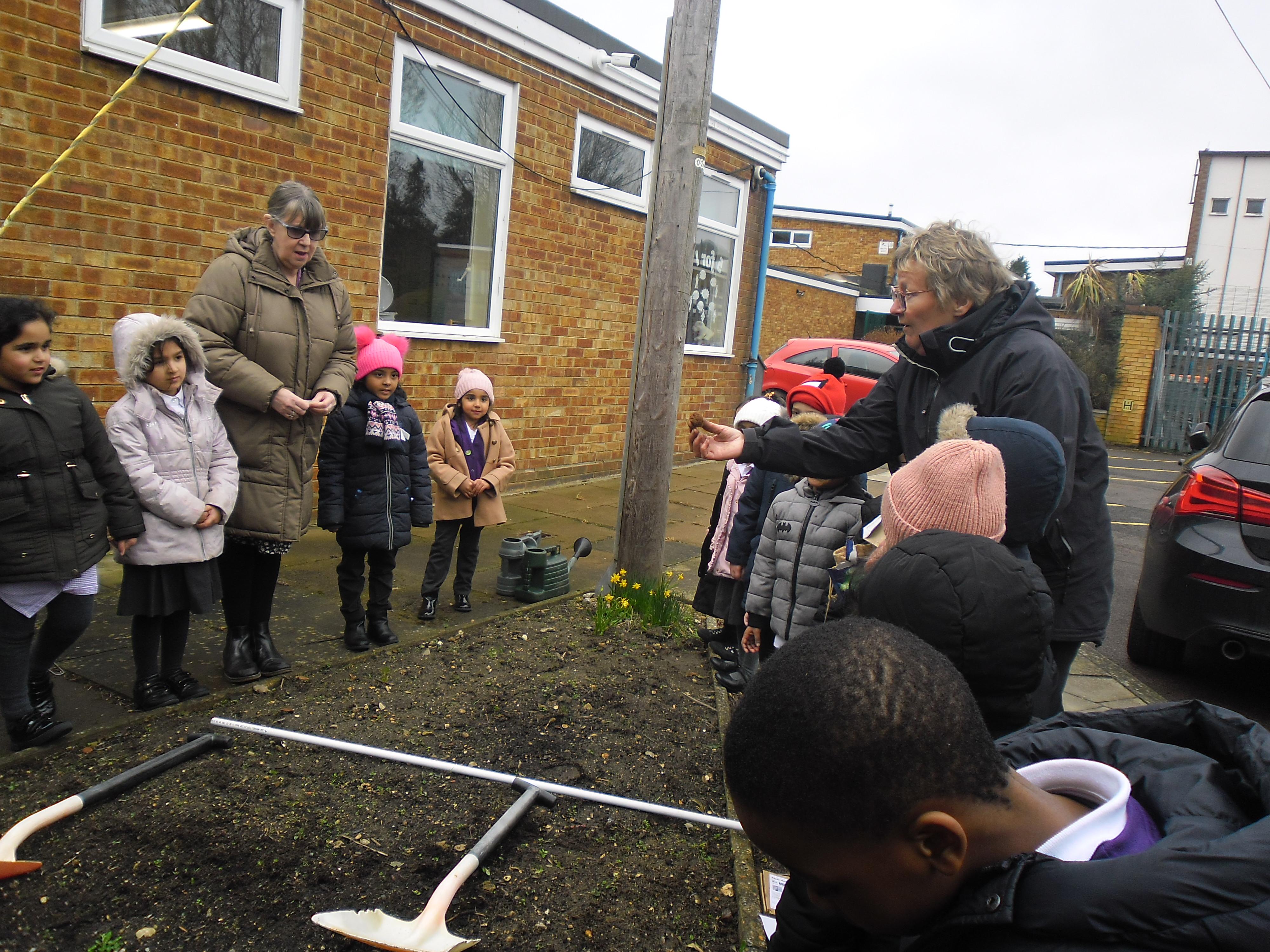 Mrs Barltrop visited the Year R classes during 2022/2023 every week to do some gardening with them. They planted some seeds, raked the leaves and had lots of fun. Mrs Barltrop is a keen gardener and was thrilled to work with the Year R children, teaching them lots about gardening and how plants grow. The children loved spending time outside with her and gained so much from this fabulous experience!!