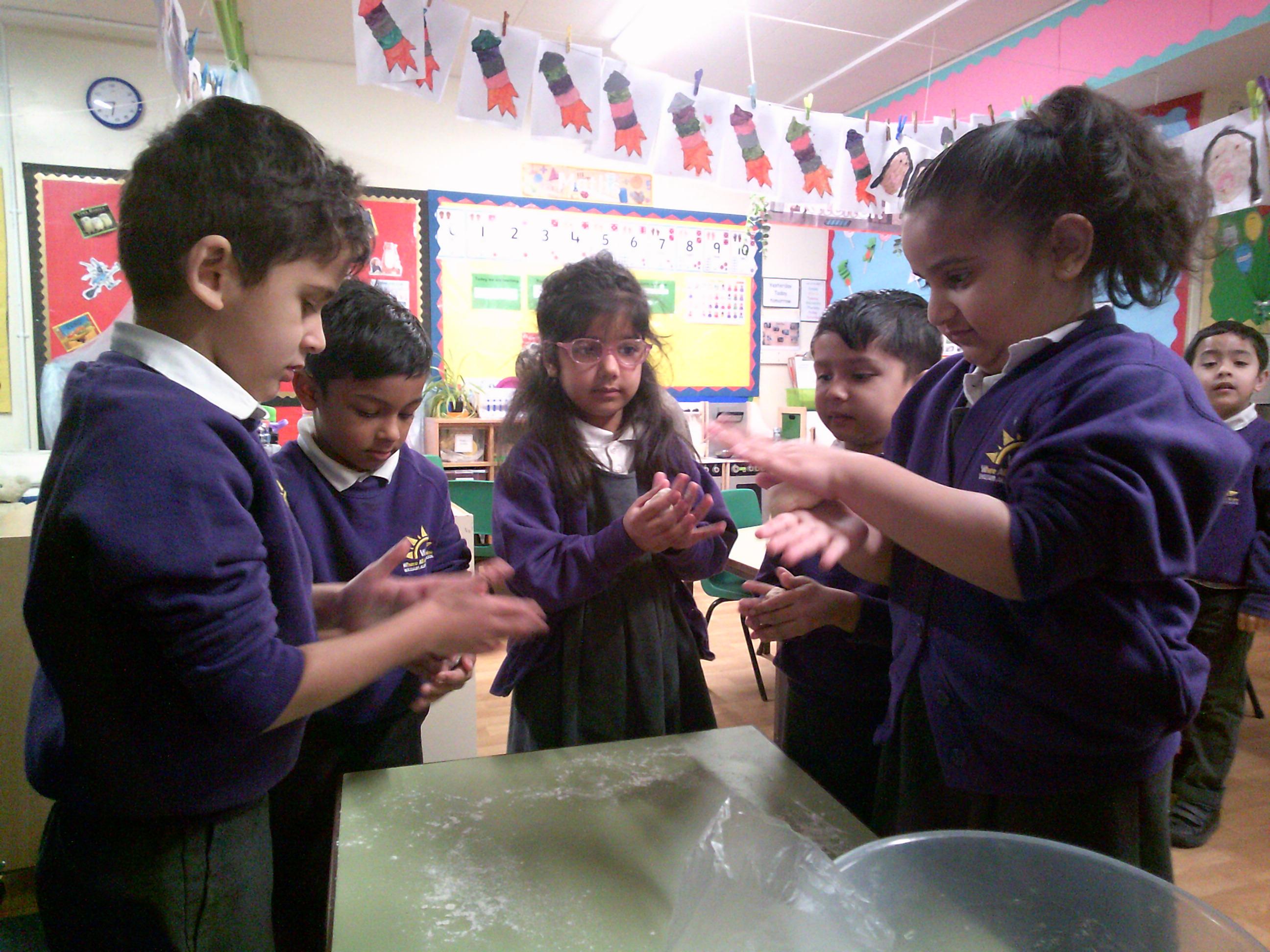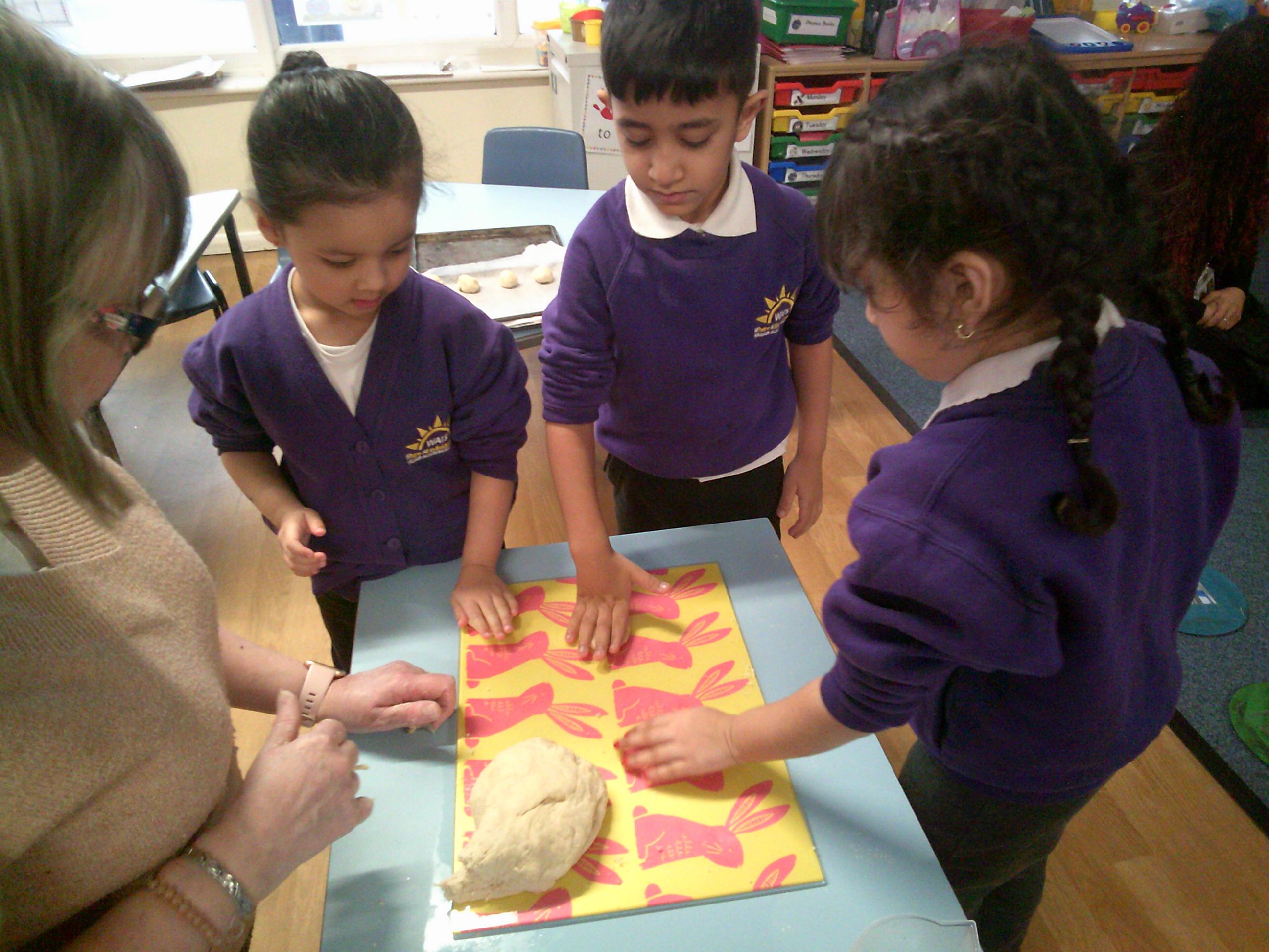 Year R have been learning the story of The Little Red Hen. In the story the red hen has to do lots of jobs to make the bread but her friends won’t help her. In Year R we pretended to do all the jobs and also made bread rolls. They tasted delicious!!!