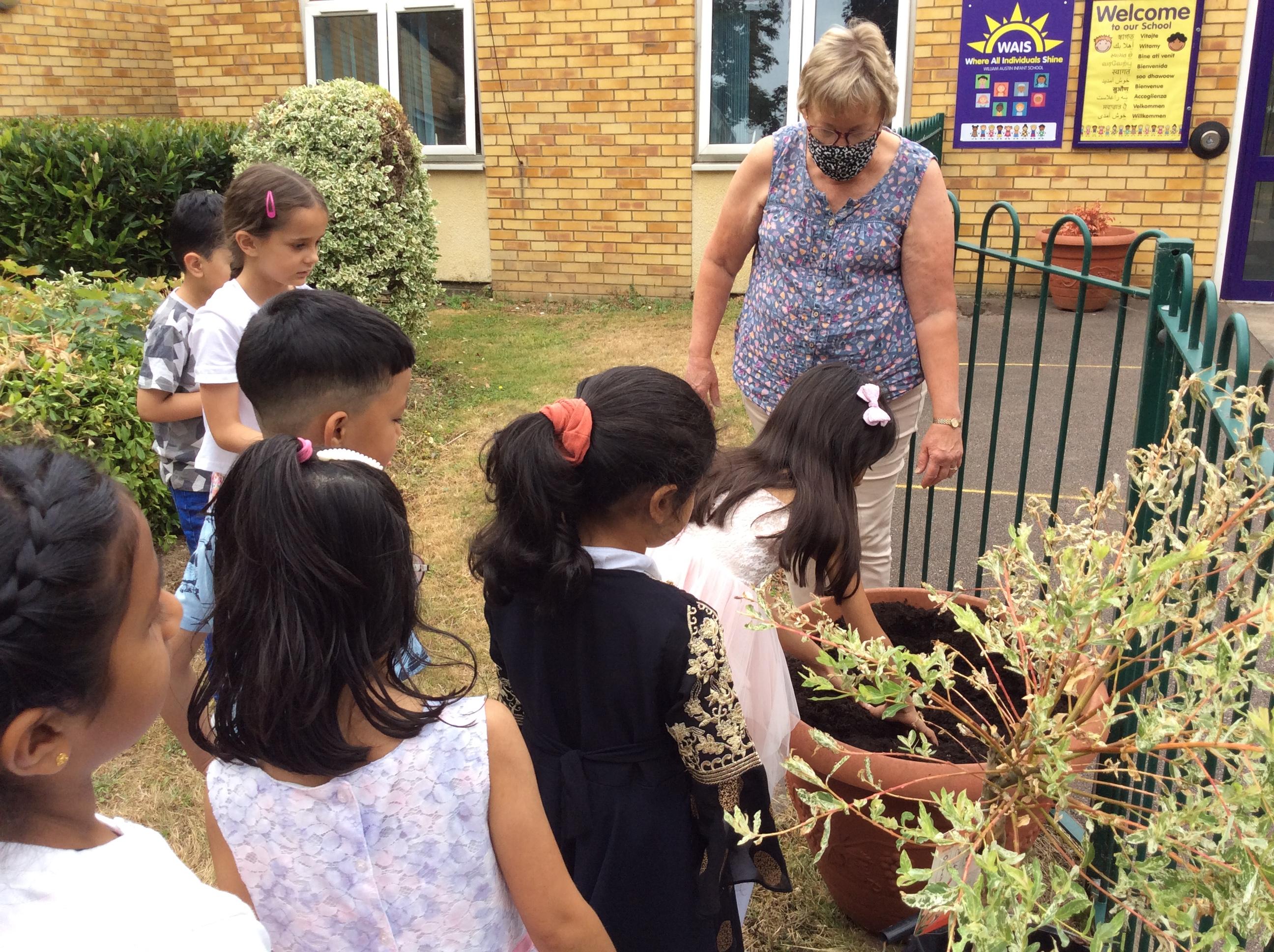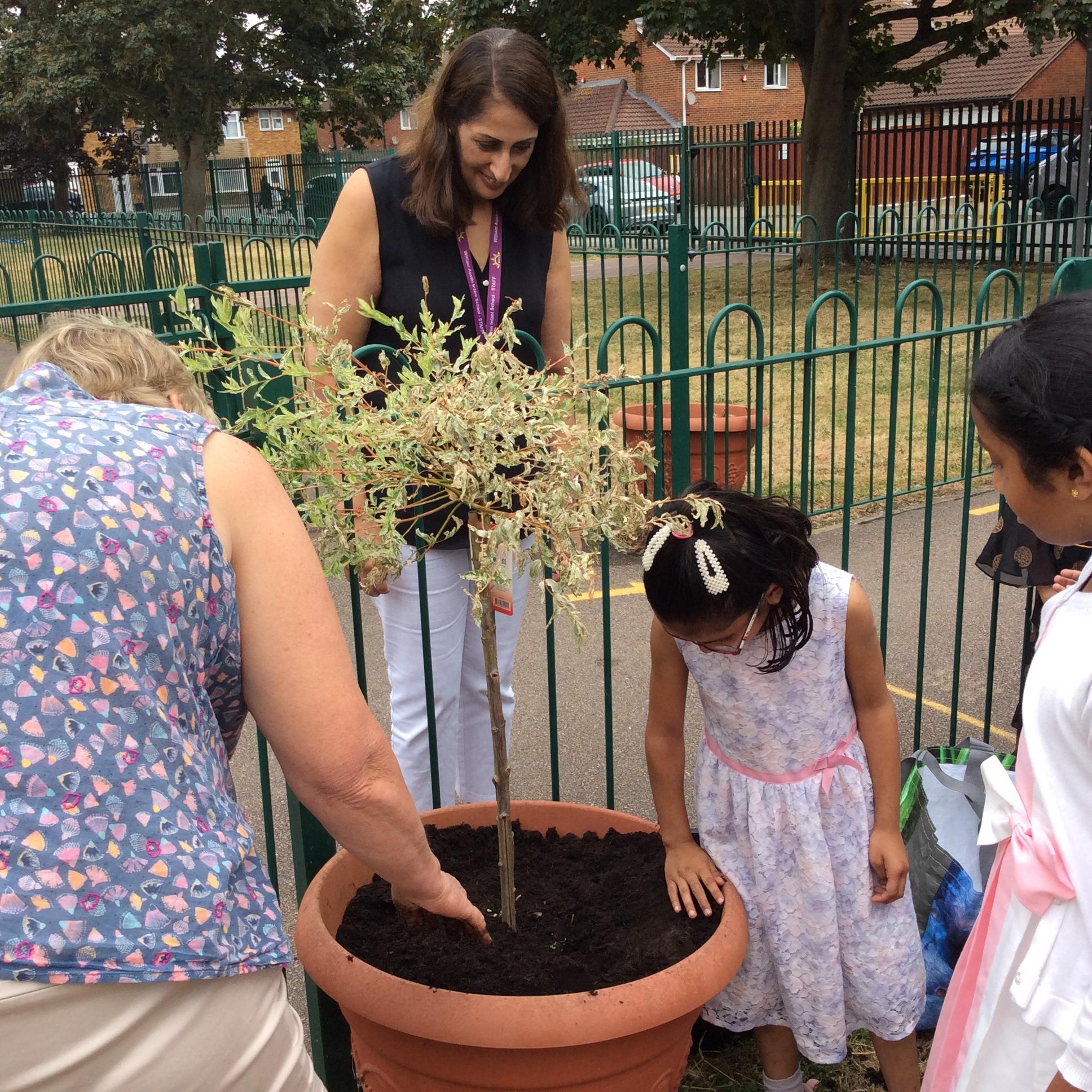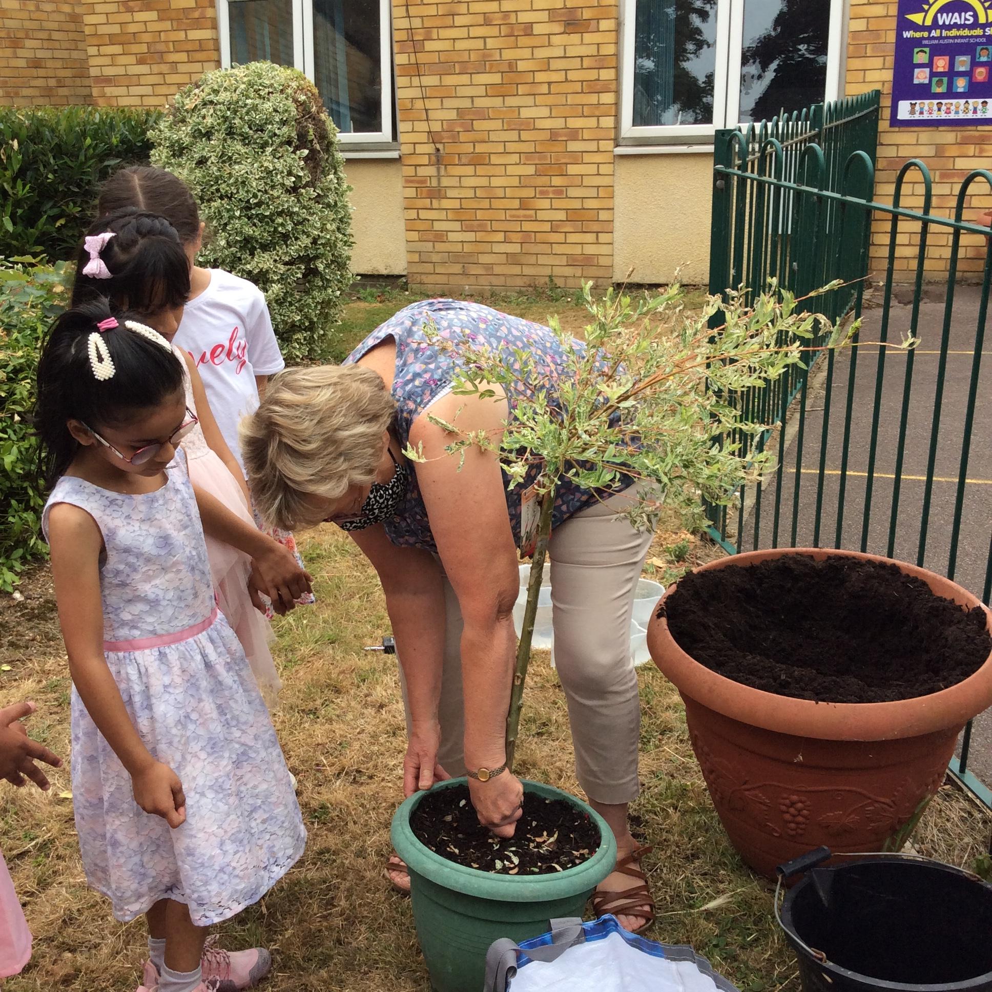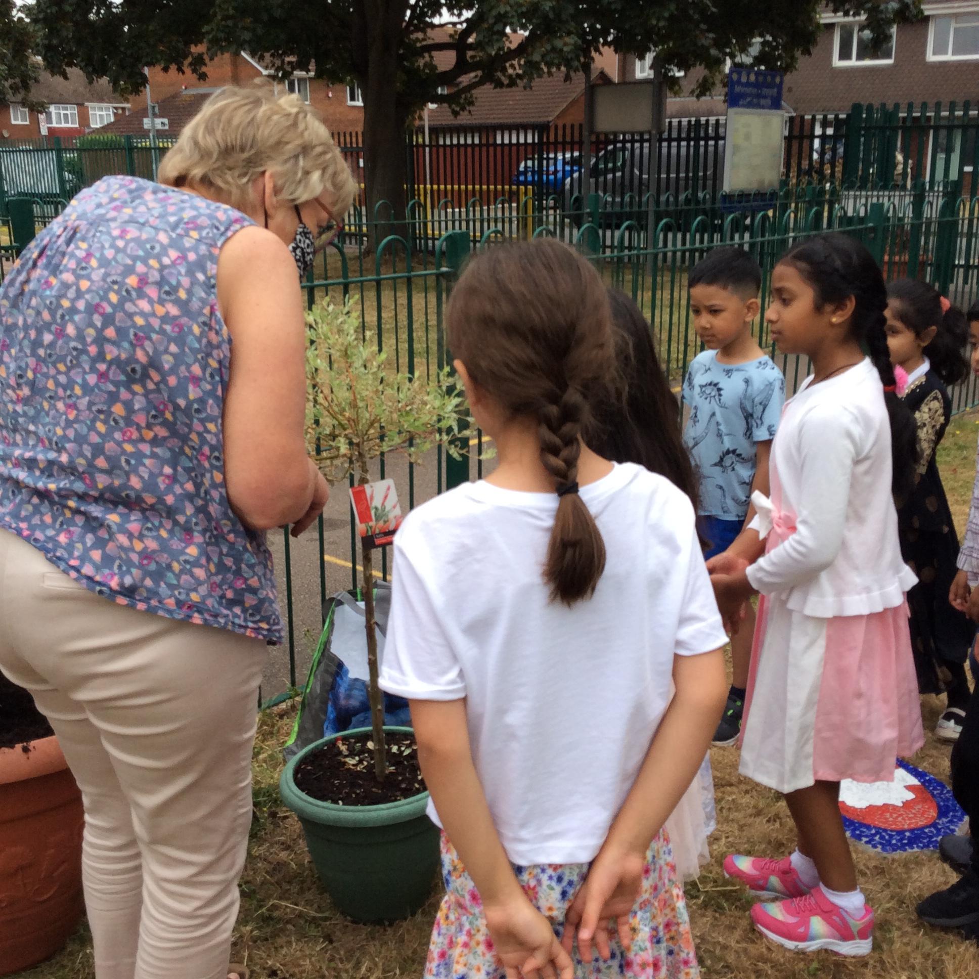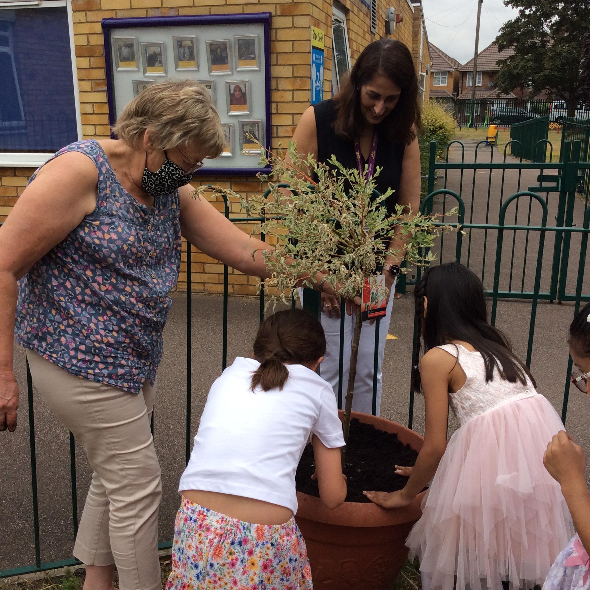 Mrs Barltrop and the MPPs plant the Jubilee Tree