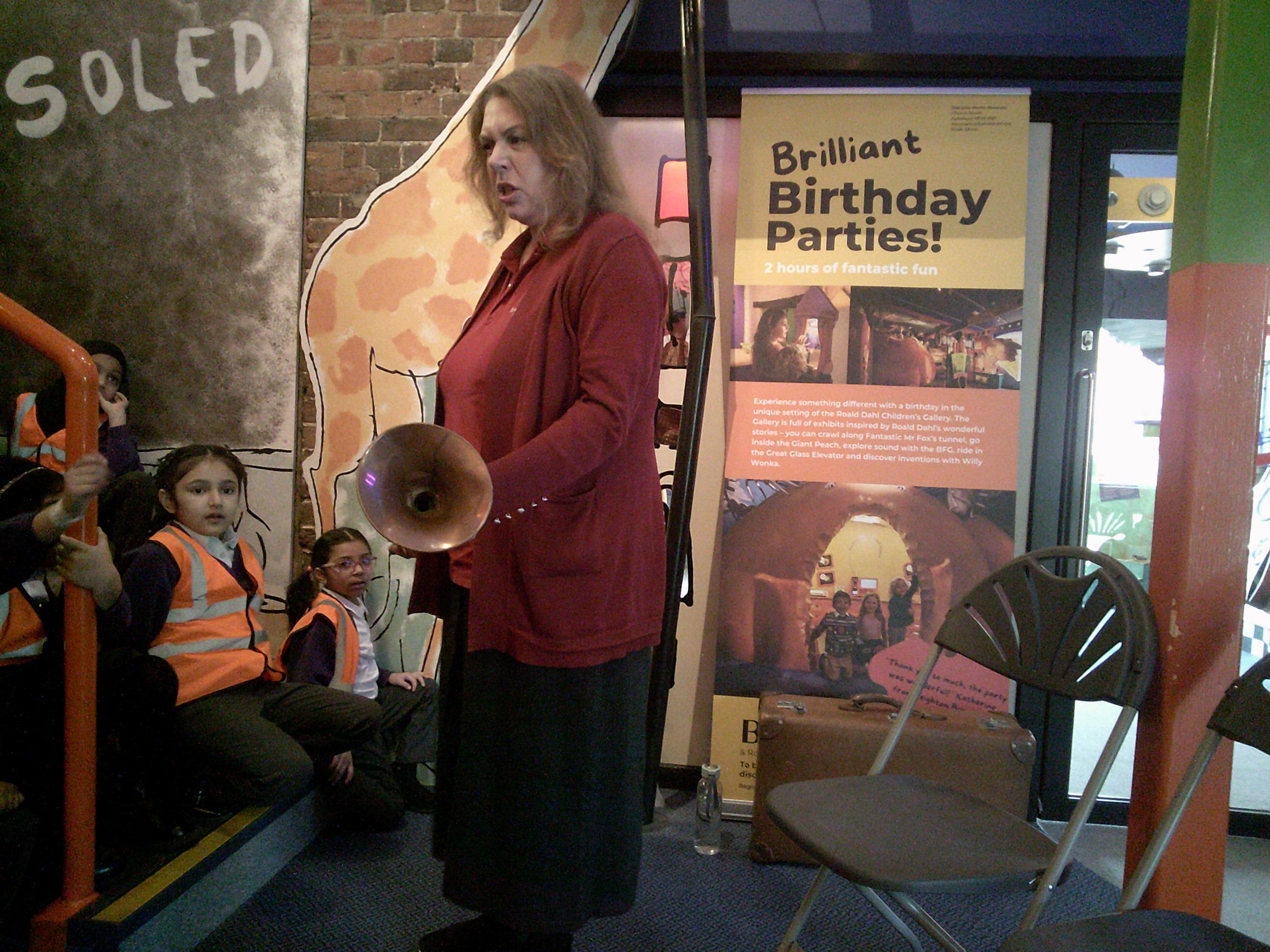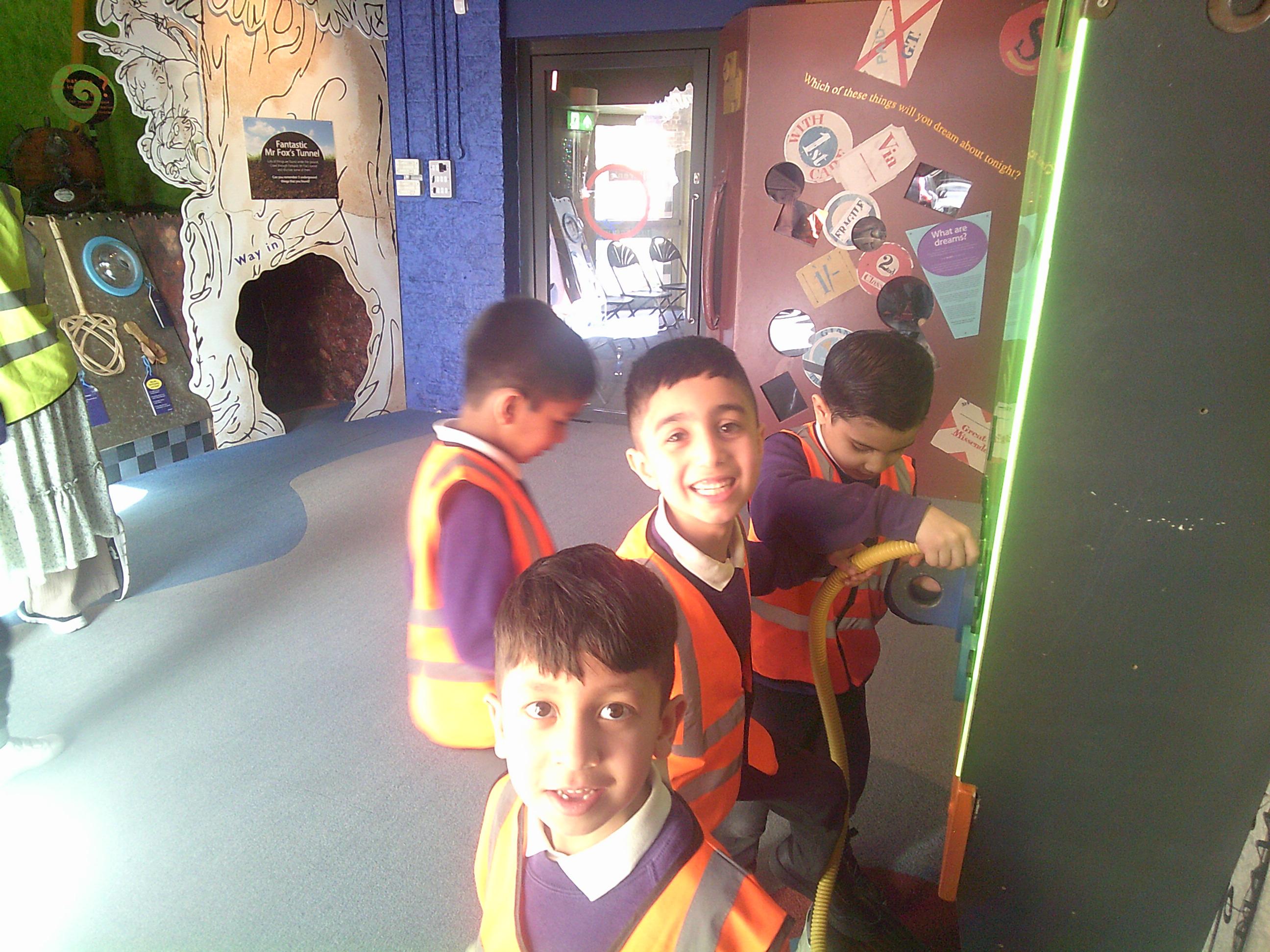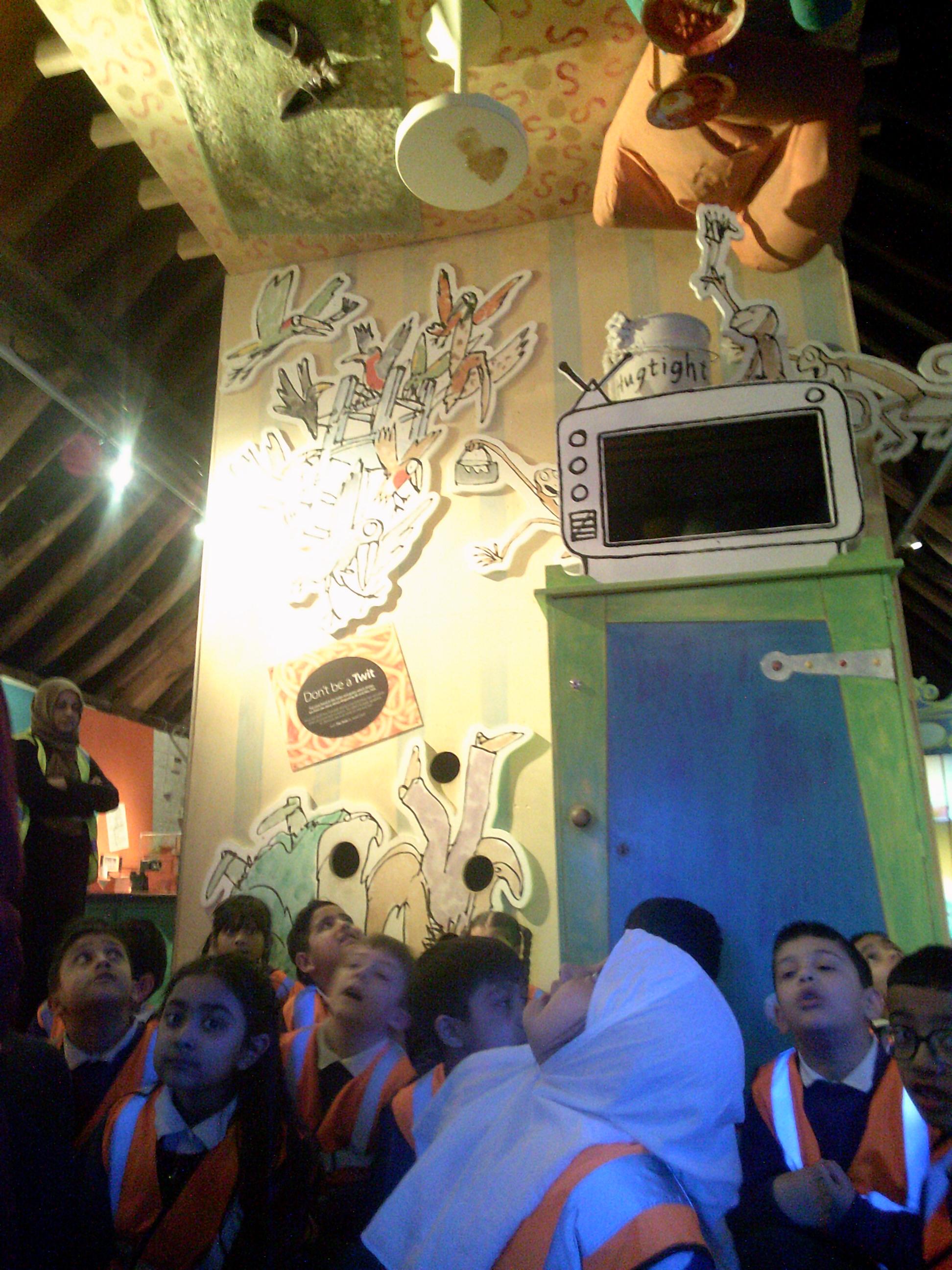 Year 2 had a wonderful trip to The Roald Dahl Children’s Gallery in Aylesbury. We really enjoyed the people in the Gallery acting out some parts of his stories like ‘The Twits’. We thought it was hilarious when they showed us a disgusting glass eye, just like the one Mrs Twit used to trick Mr Twit. We had lots of opportunities to explore some of our favourite stories such as Mr Fox’s tunnel, James and the Giant peach, Matilda’s library and the BFG. During our visit we had huge amounts of fun exploring shadows, sound, minibeasts and we even explored how the green screen worked. We made an appearance on TV and then were squashed and stretched! Some of us travelled in Charlie’s glass elevator and we all got to participate in some drama activities like Charlie and the Chocolate factory. Have a look at all the fun that we had!