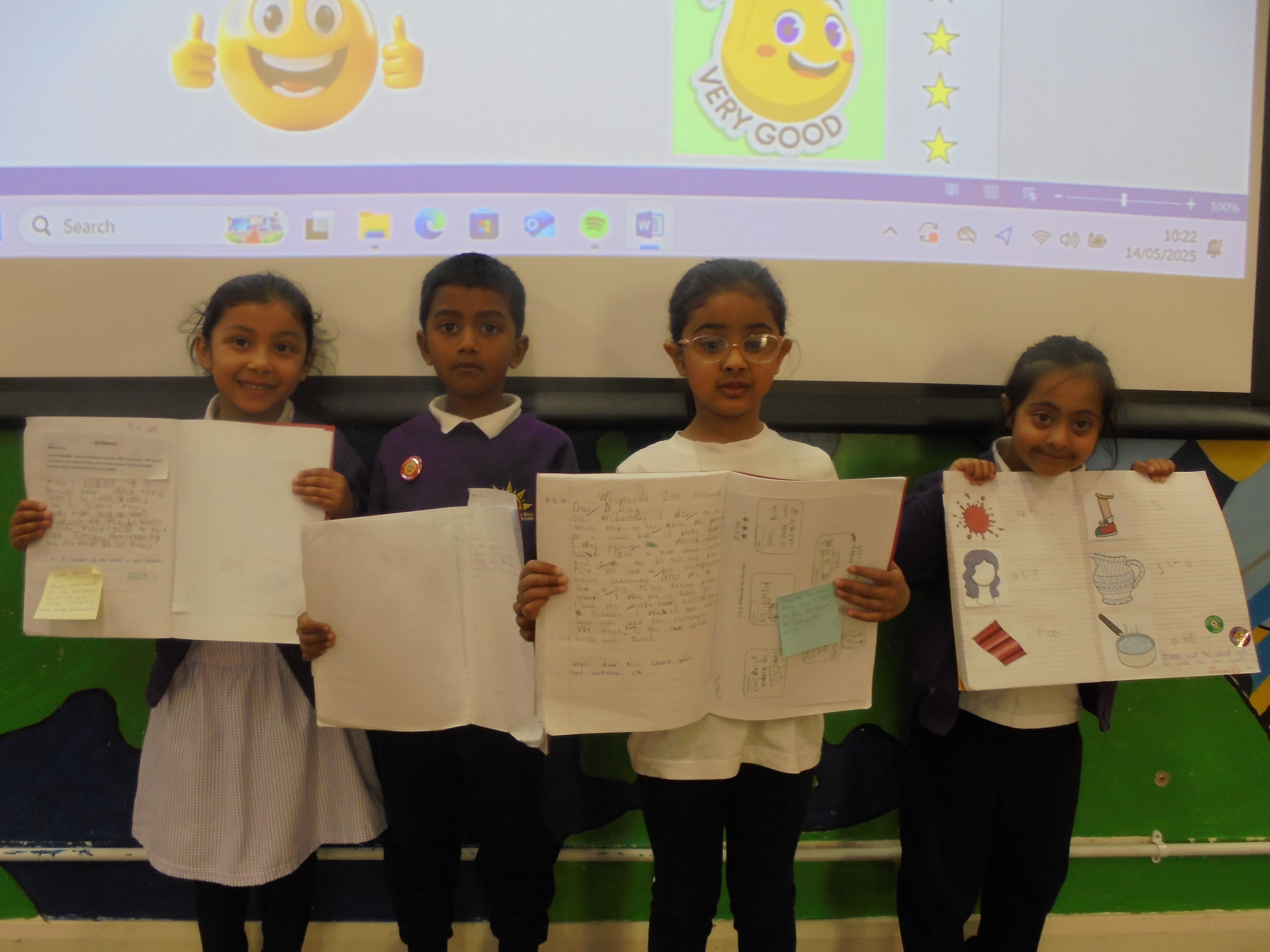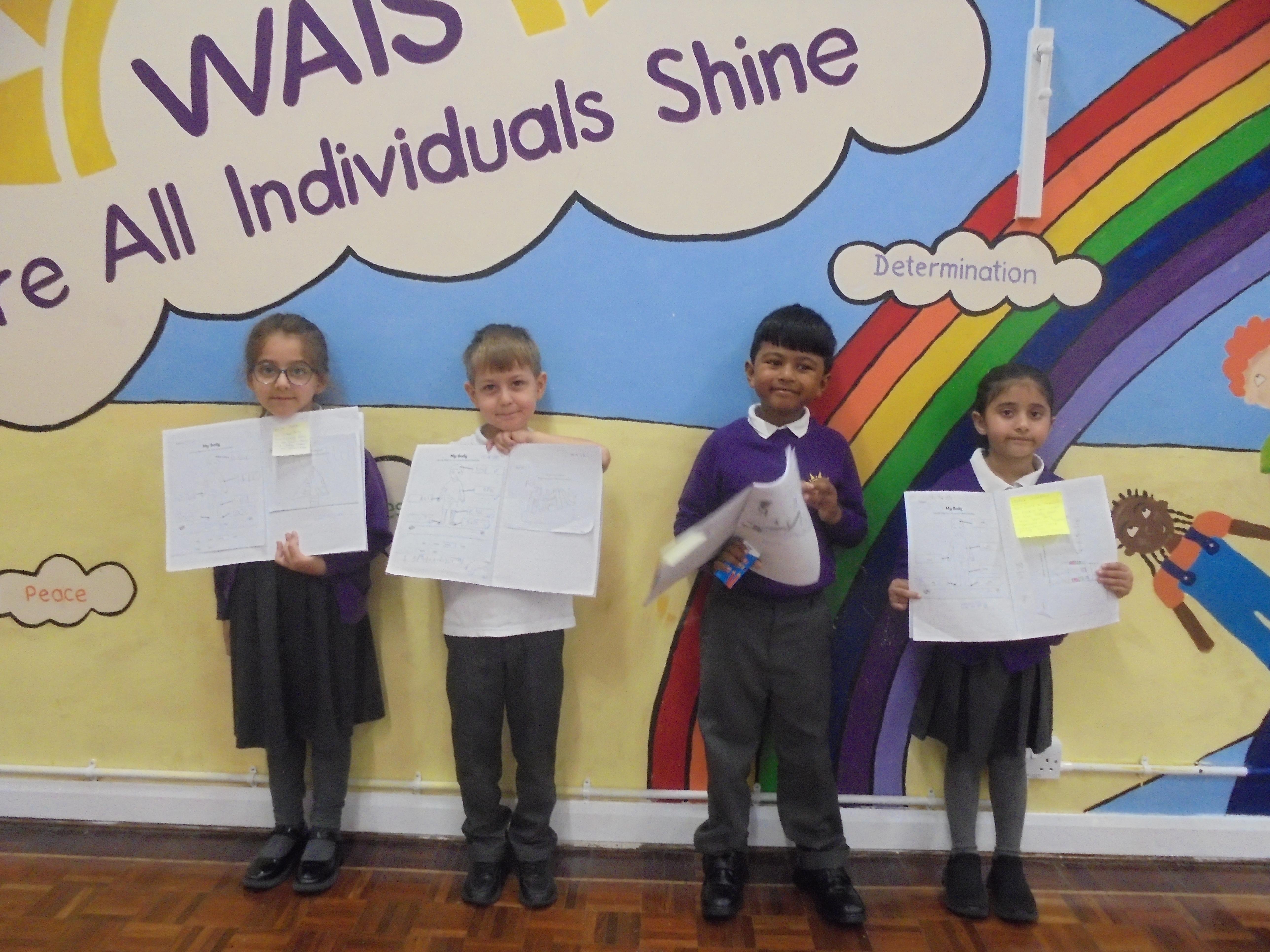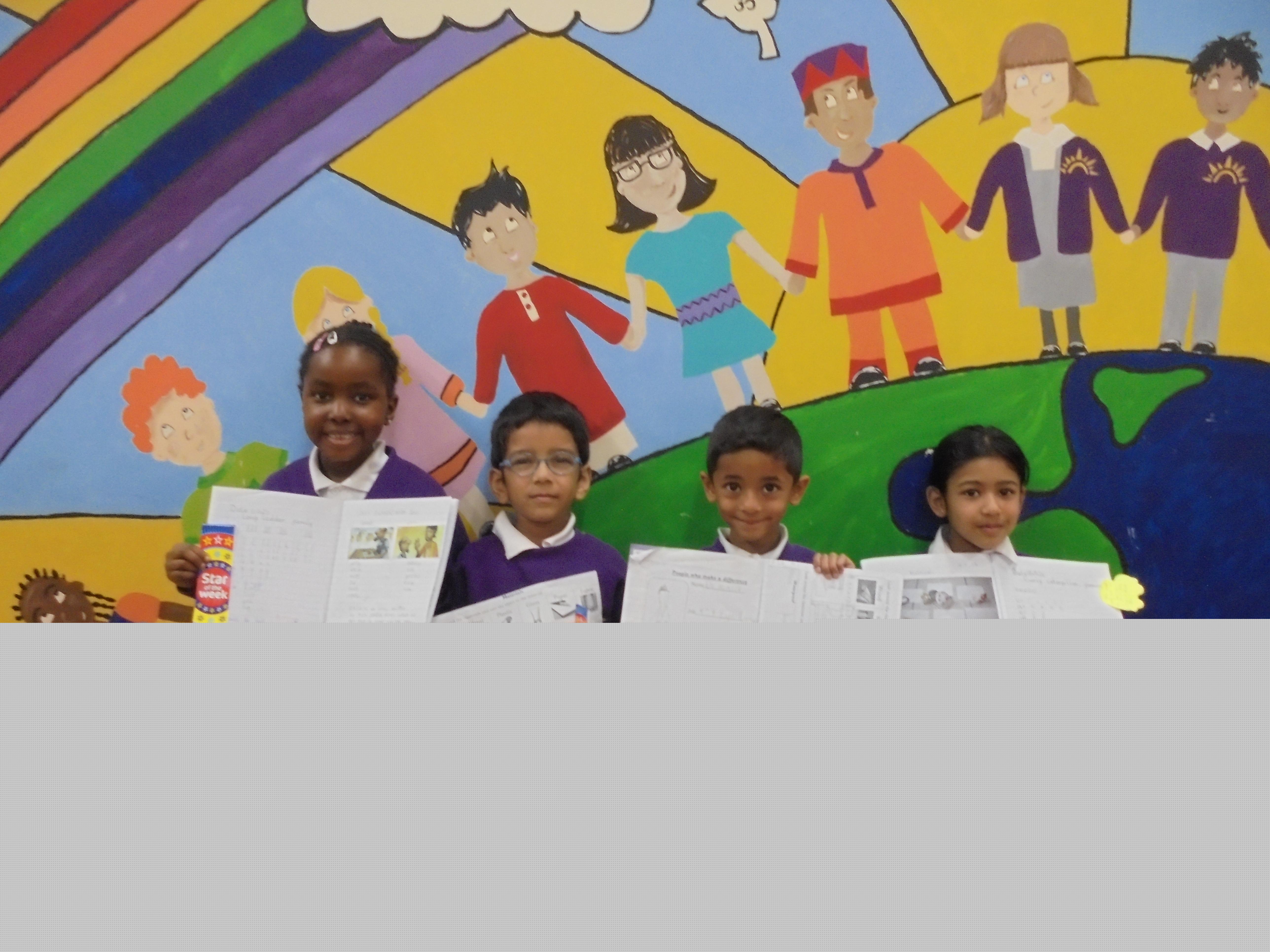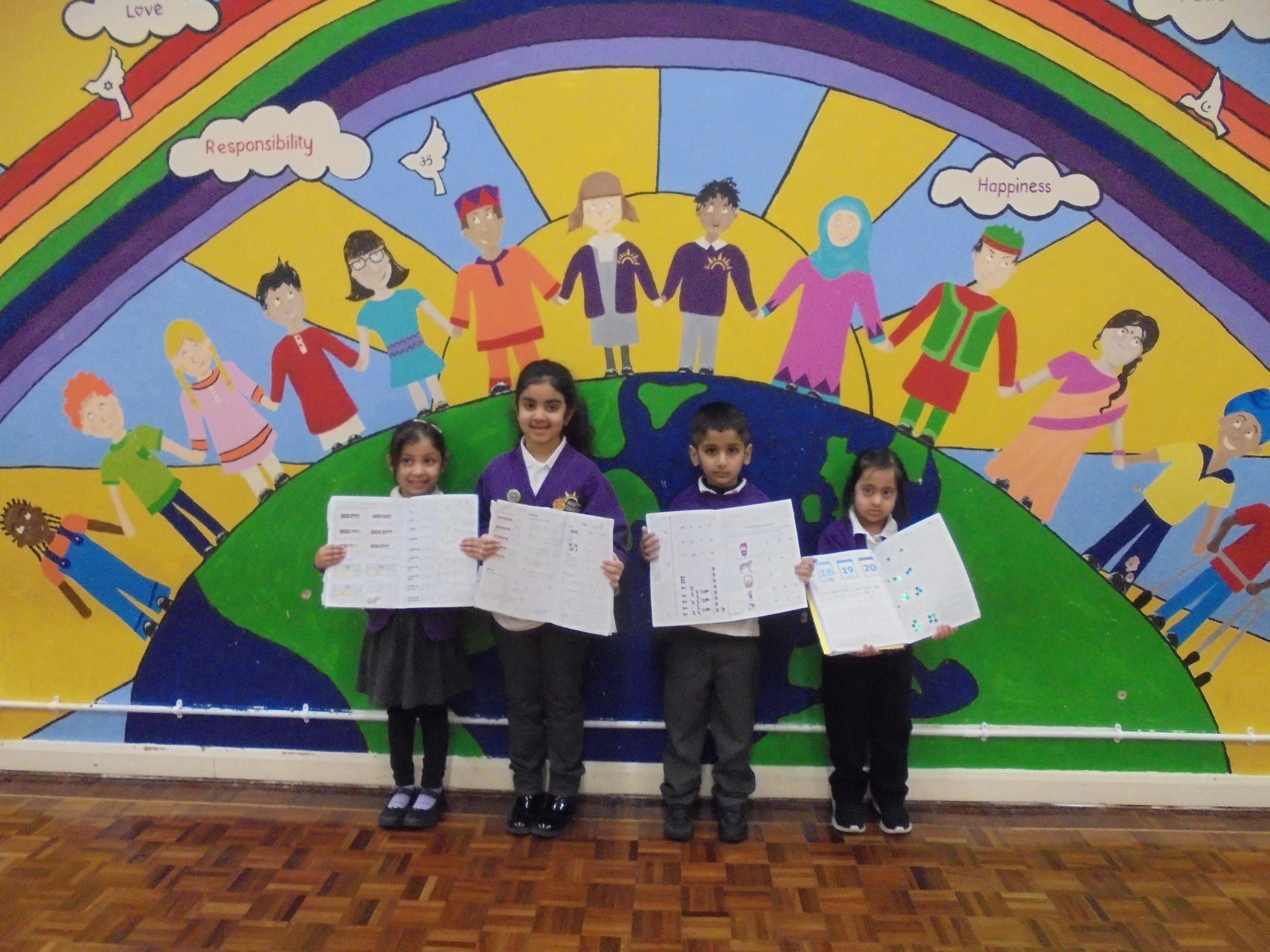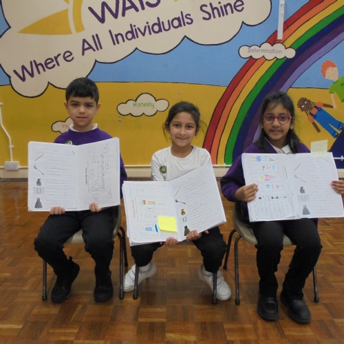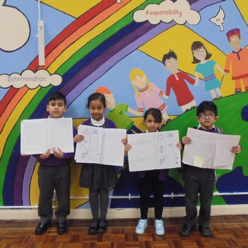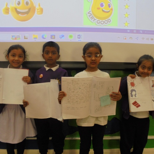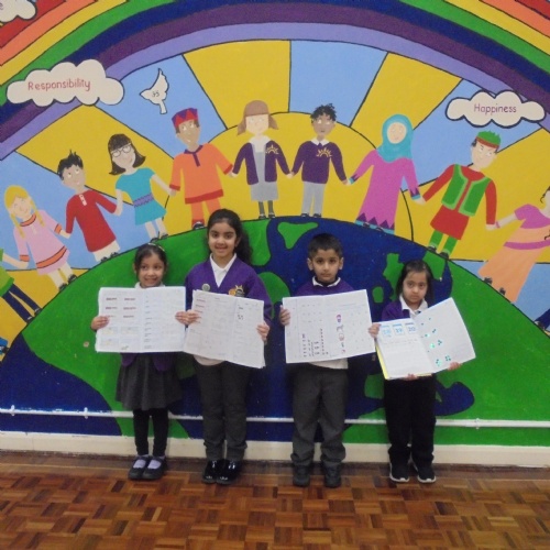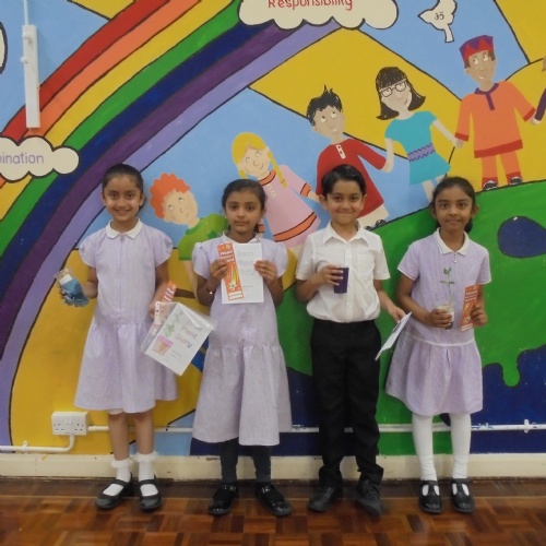 Year 2 - Zackariya (Kingfisher), Alayna (Lark), Ameerah (Owl), Karima (Puffin)