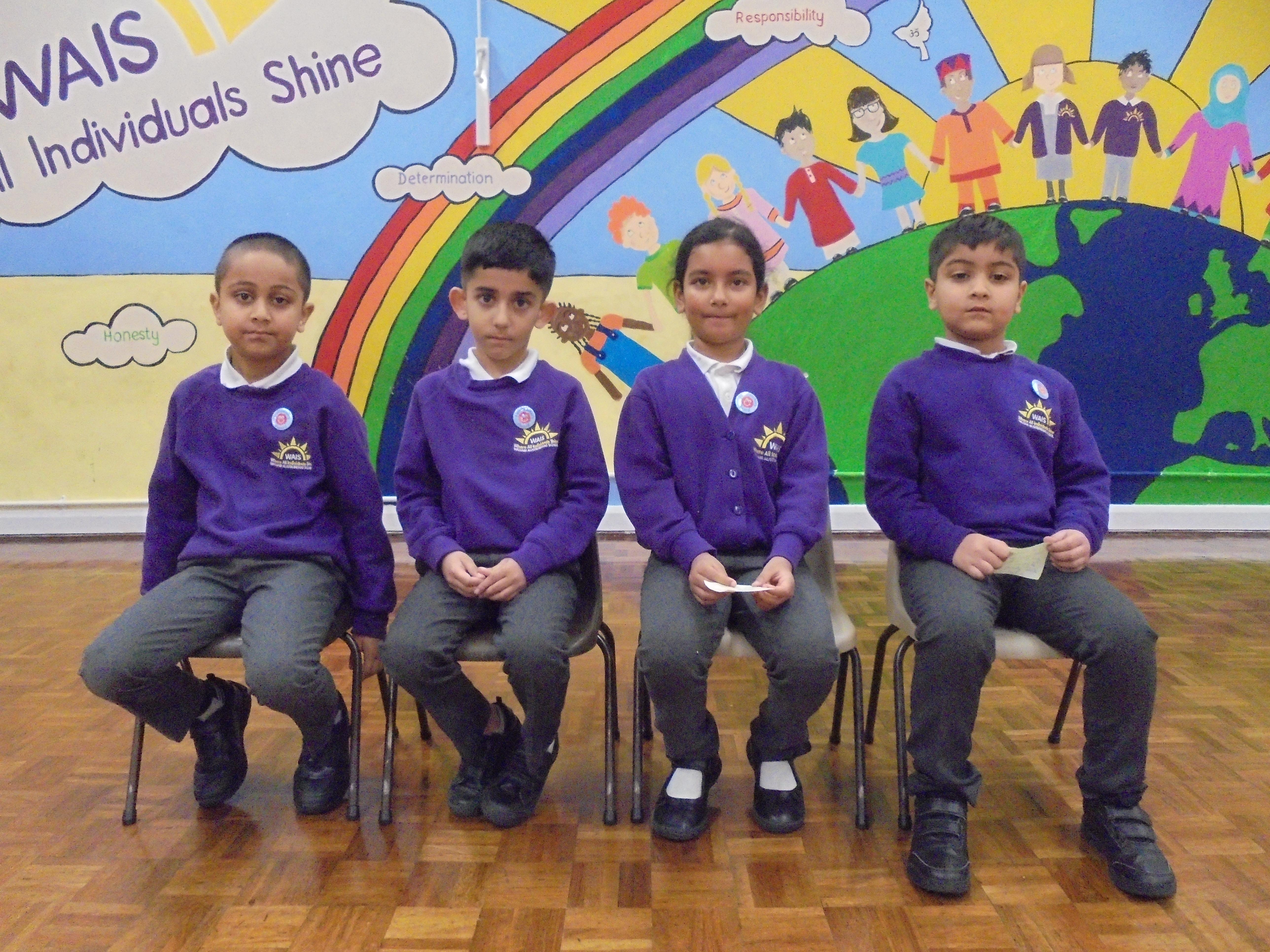 Year 2 - Zivah (Kingfisher),  Armaan (Lark),  Sana (Owl),  Ayaan (Puffin)