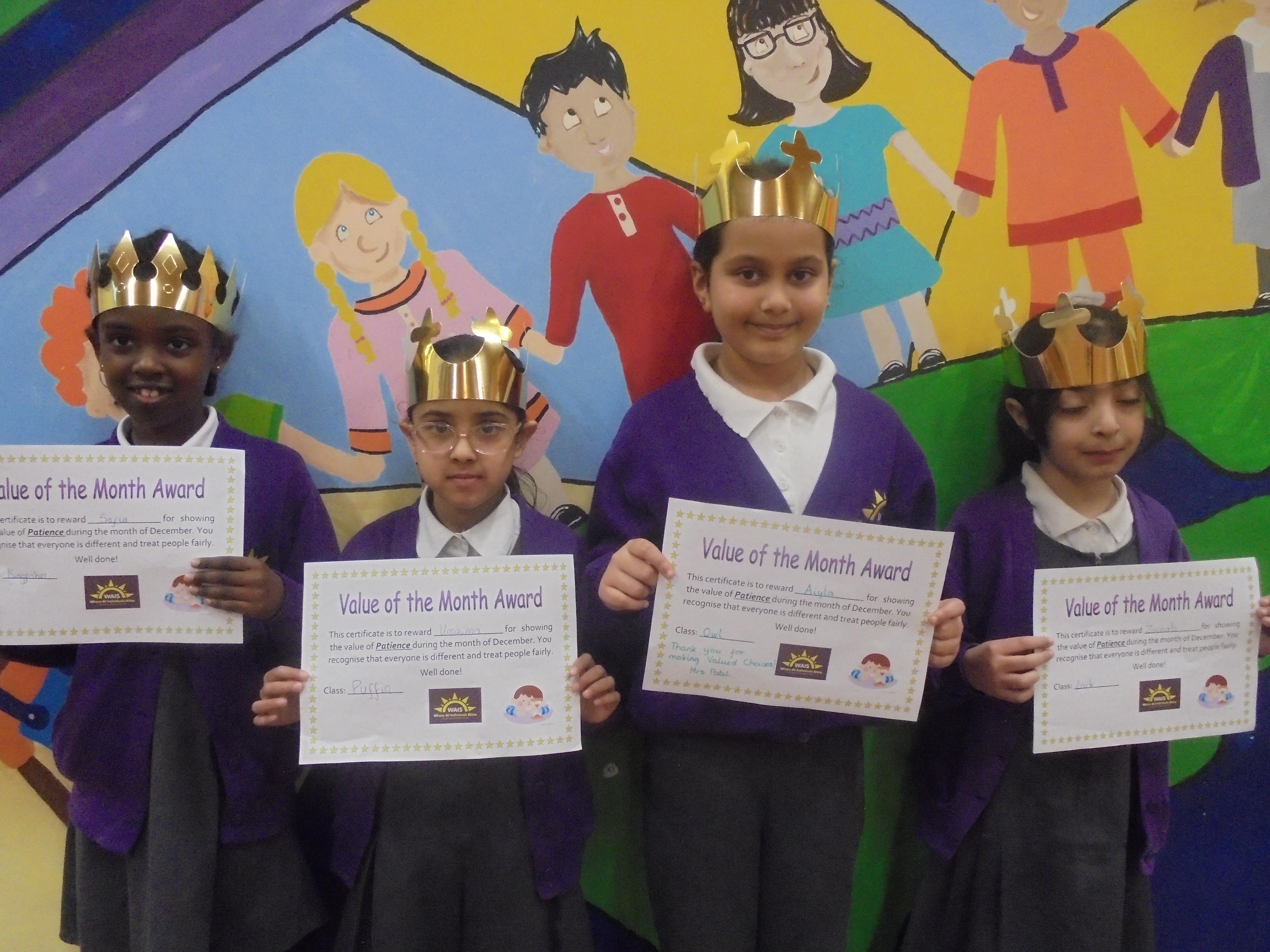 Our Values Super Stars always make us extremely proud! They are excellent role models to their peers in school, and wear their Values crowns with pride!